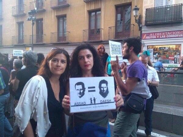 Como puede comprobarse en la foto que encabeza este artículo, esta respetada analista incluso llegar a equiparar al legítimo presidente Bashar al-Assad con el grupo terrorista Estado Islámico (creado por Washington, aunque Leila no nos lo cuente), idea que comparte junto a la periodista Olga Rodríguez (lado izquierdo de la imagen), también respetada y premiada [7] por gran parte de la izquierda corporativa y pro-imperialista española.
